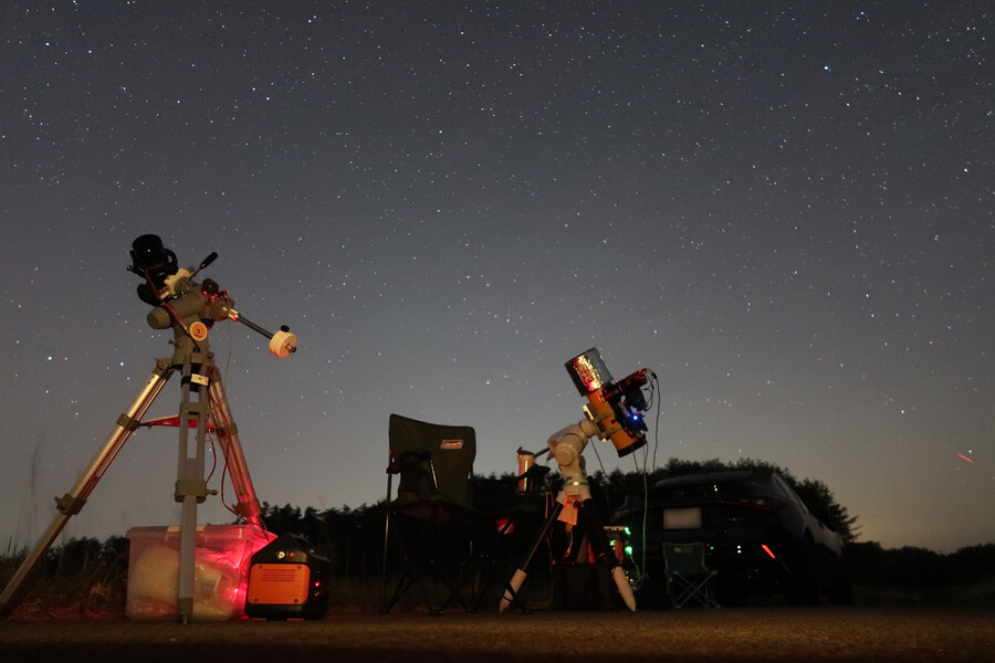 予報は翌日4日の方が良さそうでしたが都合がつかなかったため3日に決行。現地には星見隊のkishino隊長はじめ5名が集結し賑やかな遠征となりました。
