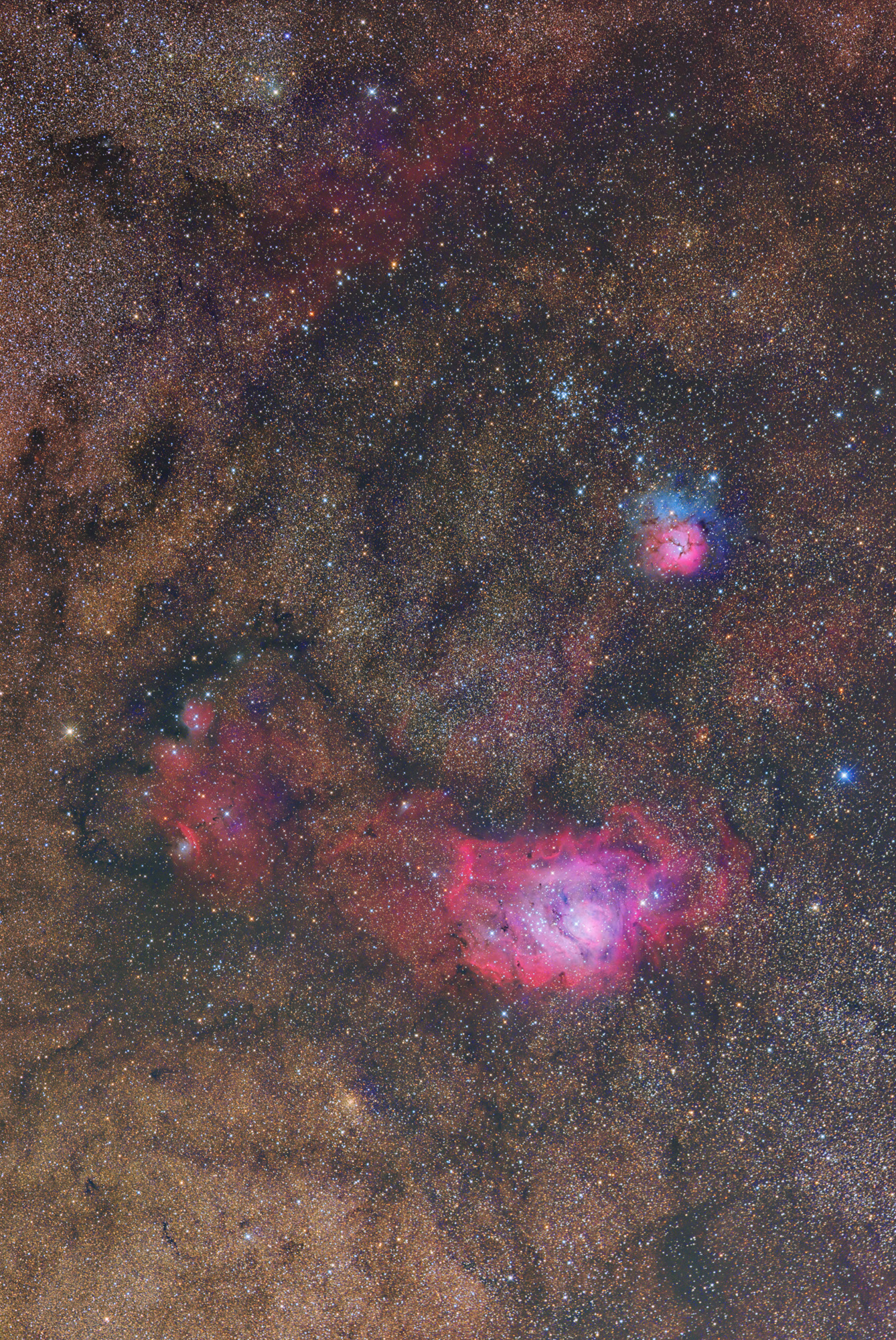 見事なM8,M20回りです。淡い部分の色彩もきれいに表現されていて、隅々まで天の川や微恒星もばっちり。えっ、フルサイズなんですね!!