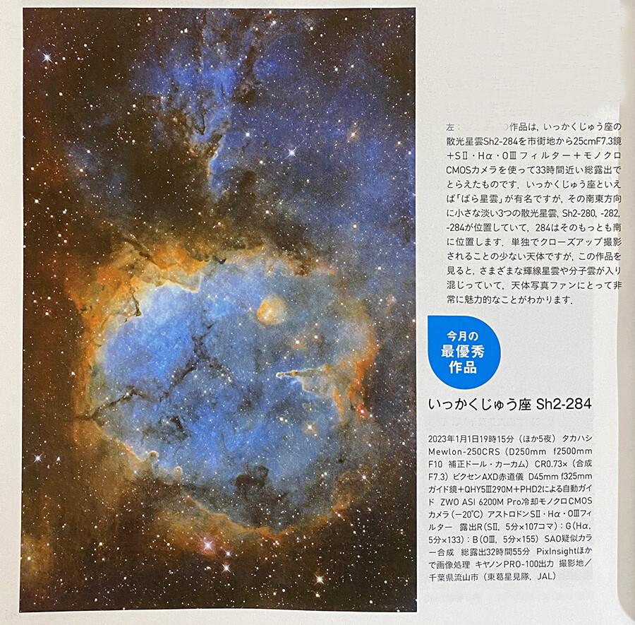 年初に撮影した「いっかくじゅう座Sh2-284」が天文ガイド4月号で最優秀作品賞に選ばれました。
